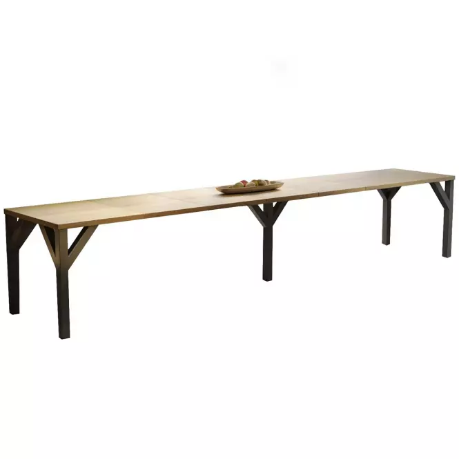 Metalowy stelaż nie tylko zapewnia doskonałą stabilność, ale także dodaje meblowi odrobiny industrialnego szyku. To połączenie ciepła naturalnej faktury płyty wiórowej z chłodnym, wyraźnym akcentem metalu tworzy harmonijną kompozycję, która przyciąga wzrok i nadaje wnętrzu unikalnego charakteru. Cała konstrukcja waży 106 kg, co świadczy o jej solidności, a jednocześnie gwarantuje stabilność nawet w pełnym rozłożeniu.