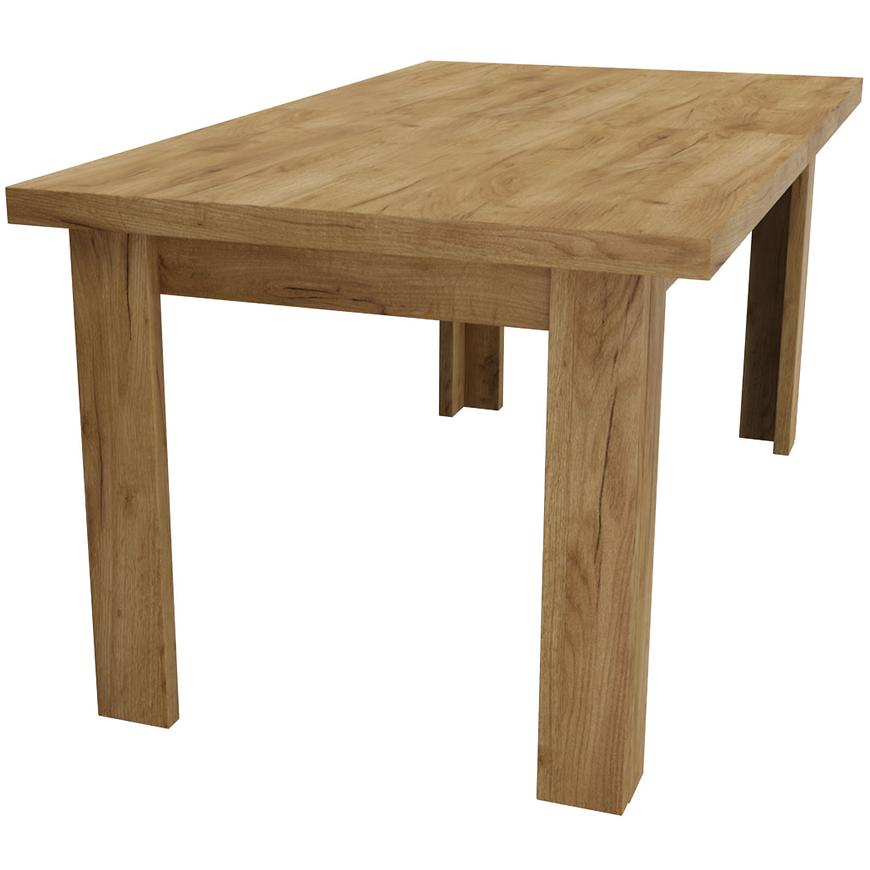 Stół został wykonany z trwałej płyty wiórowej laminowanej, co gwarantuje wysoką jakość i odporność na codzienne użytkowanie. Materiał ten jest łatwy w pielęgnacji, co ułatwia utrzymanie stołu w doskonałym stanie przez wiele lat.