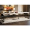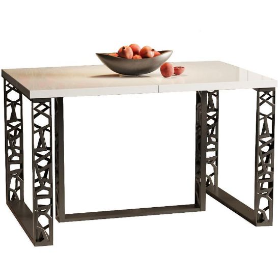 Blat wykonany został z wysokiej jakości płyty wiórowej, która charakteryzuje się wytrzymałością i trwałością, jednocześnie zachowując estetyczny wygląd na długie lata. Wykończenie dodaje mu elegancji i nadaje nowoczesny charakter, a także sprawia, że jest łatwy w pielęgnacji i odporny na codzienne użytkowanie. Stelaż stołu wykonano z metalu, co gwarantuje stabilność oraz wytrzymałość konstrukcji, zapewniając solidne wsparcie nawet przy pełnym rozłożeniu.