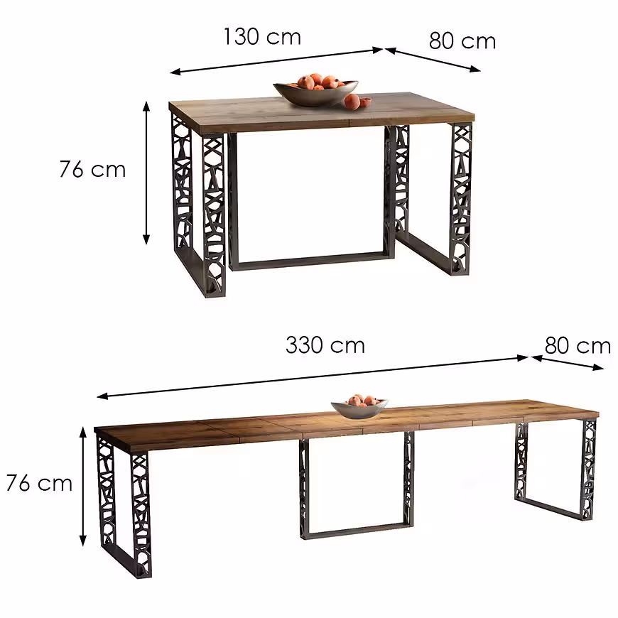 Stół rozkładany Ewerest 330 to elegancki i funkcjonalny mebel, który sprawdzi się zarówno w codziennym użytkowaniu, jak i podczas większych spotkań. Dzięki rozkładanemu blatowi, stół pozwala na łatwe zwiększenie powierzchni z 130 cm do imponujących 330 cm, zapewniając komfortowe miejsce dla rodziny i gości. Wysokość stołu wynosząca 76 cm oraz szerokość 80 cm pozwalają na wygodne użytkowanie, a klasyczna prostokątna forma blatu sprawia, że idealnie wpisuje się on w przestrzeń jadalni, salonu czy nawet biura.
