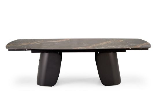 Stół rozkładany Forbus łączy nowoczesny design z funkcjonalnością. Blat wykonany ze spieku w czarnym marmurze matowym zapewnia elegancki wygląd i trwałość, a stalowy czarny stelaż malowany proszkowo gwarantuje stabilność. Dzięki mechanizmowi rozkładania stół może pomieścić 6 do 8 osób, idealny do jadalni lub salonu.