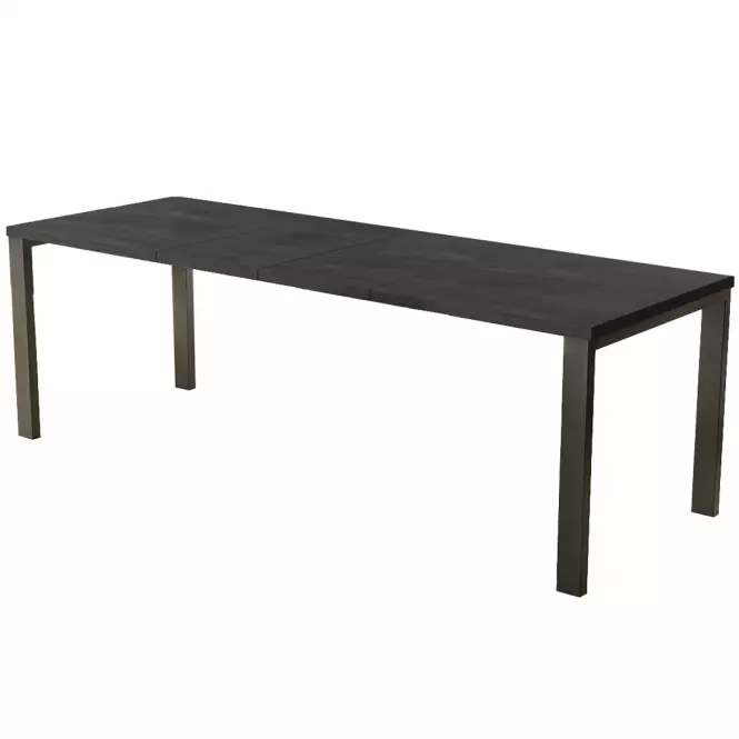 Metalowy stelaż stołu nie tylko zapewnia mu stabilność, ale również podkreśla nowoczesny charakter mebla. Solidna, geometryczna konstrukcja stelaża harmonijnie współgra z matowym wykończeniem blatu, tworząc efektowny i stylowy mebel, który łatwo wkomponować w różnorodne przestrzenie – od loftowych wnętrz po klasyczne, jasne jadalnie. Dodatkowo matowa powierzchnia blatu sprawia, że stół jest łatwy do utrzymania w czystości i odporny na drobne zarysowania, co czyni go praktycznym wyborem na lata.
