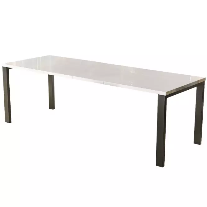 Metalowy stelaż stołu nie tylko zapewnia mu stabilność, ale również podkreśla nowoczesny charakter mebla. Solidna, geometryczna konstrukcja stelaża harmonijnie współgra z matowym wykończeniem blatu, tworząc efektowny i stylowy mebel, który łatwo wkomponować w różnorodne przestrzenie – od loftowych wnętrz po klasyczne, jasne jadalnie. Dodatkowo matowa powierzchnia blatu sprawia, że stół jest łatwy do utrzymania w czystości i odporny na drobne zarysowania, co czyni go praktycznym wyborem na lata.