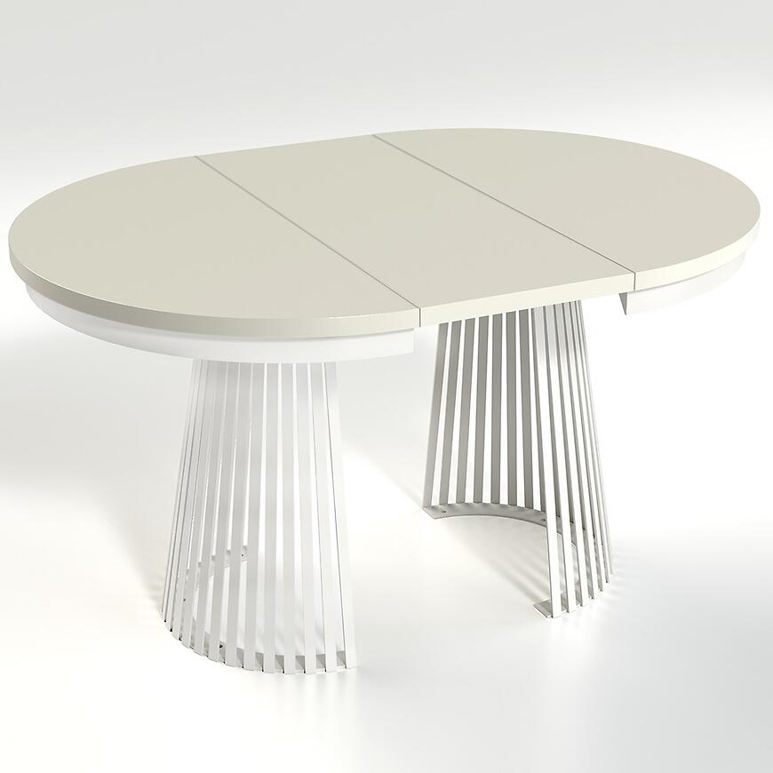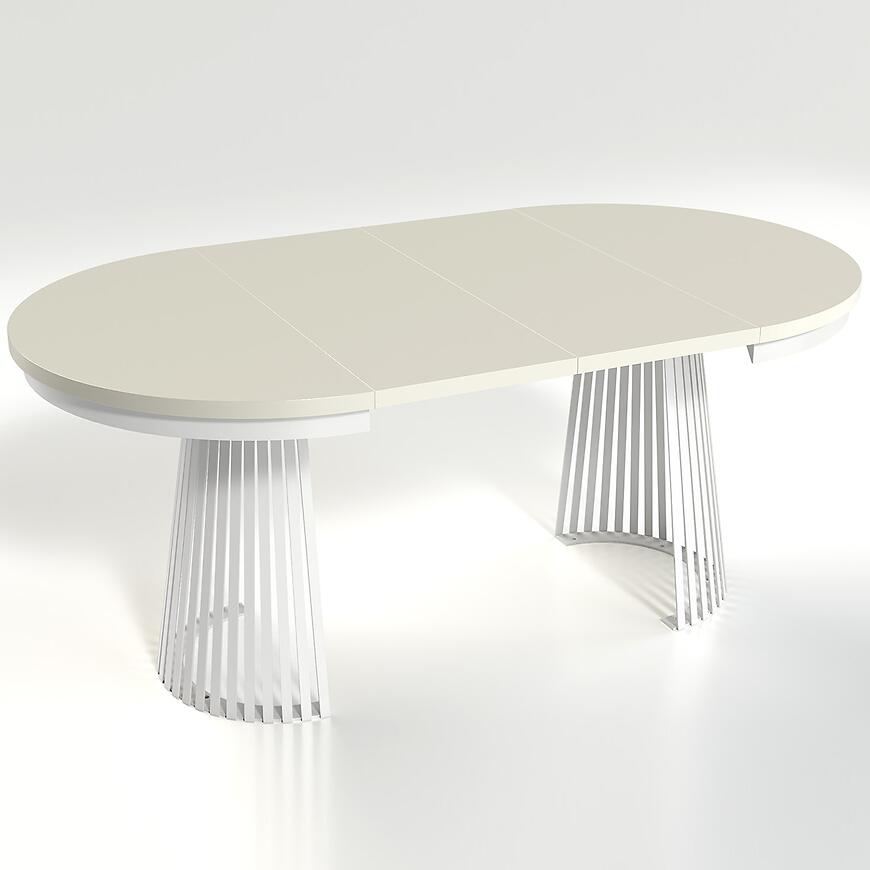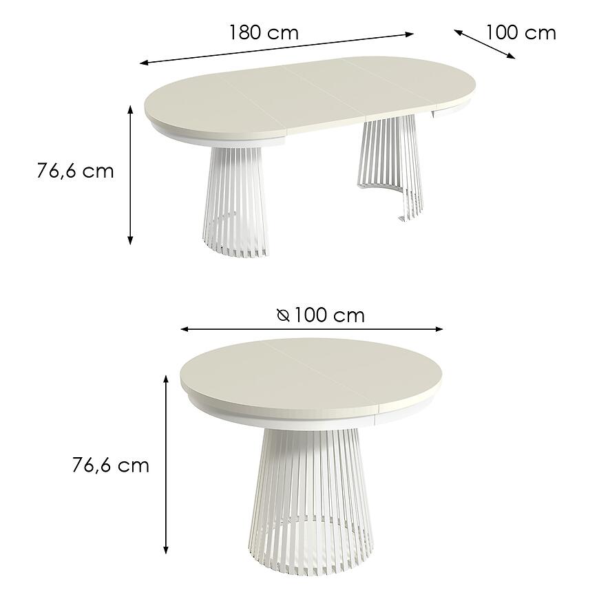 Stół Rozkładany Garda Biały/Kashmir to nowoczesny i funkcjonalny mebel w stylu loftowym, łączący eleganckie białe wykończenie z ciepłym beżowym odcieniem blatu. Blat wykonany z laminowanej płyty wiórowej, stelaż z metalu zapewniają trwałość i stabilność. Rozkładany blat pozwala zwiększyć długość stołu z 100 do 180 cm, a matowe wykończenie podkreśla nowoczesny charakter. To połączenie stylu, funkcjonalności i jakości, które wyróżni każde wnętrze.