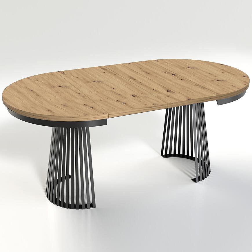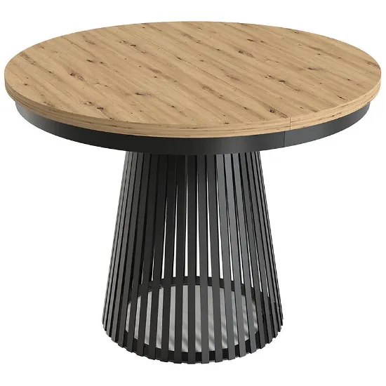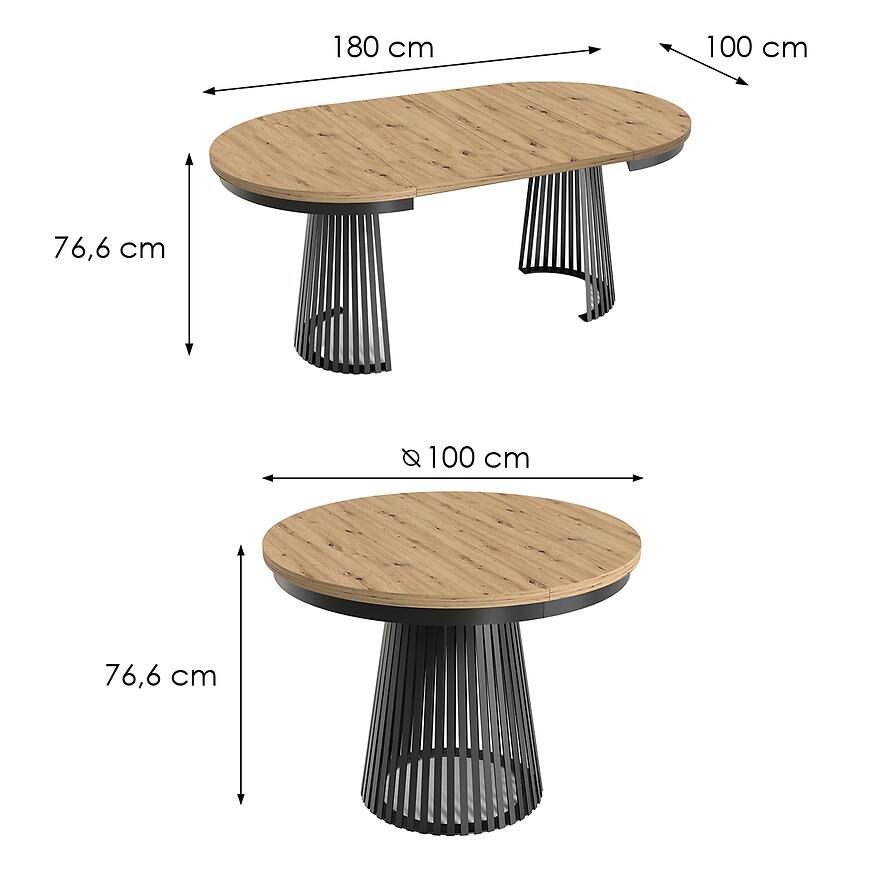 Stół Rozkładany Garda Czarny/Artisan to nowoczesny i funkcjonalny mebel w stylu loftowym, łączący eleganckie czarne wykończenie z jasnym, drewnopodobnym blatem. Blat wykonany z laminowanej płyty wiórowej, stelaż z metalu zapewniają trwałość i stabilność. Rozkładany blat zwiększa długość stołu z 100 do 180 cm, a matowe wykończenie podkreśla nowoczesny charakter. To połączenie stylu, funkcjonalności i jakości, które wyróżni każde wnętrze.