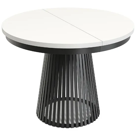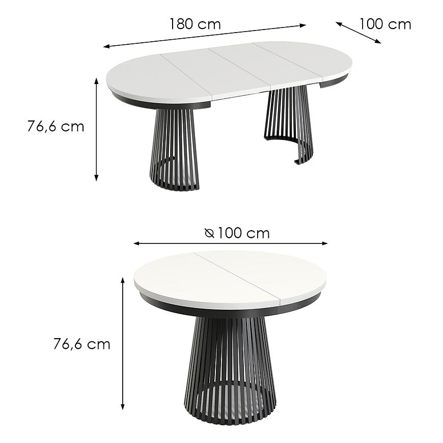 Stół Rozkładany Garda Czarny/Biel Alpejska to nowoczesny i funkcjonalny mebel w stylu loftowym, łączący eleganckie czarne wykończenie z białym, matowym blatem. Blat wykonany z laminowanej płyty wiórowej, stelaż z metalu zapewniają trwałość i stabilność. Rozkładany blat zwiększa długość stołu z 100 do 180 cm, a matowe wykończenie podkreśla nowoczesny charakter. To połączenie stylu, funkcjonalności i jakości, które wyróżni każde wnętrze.
