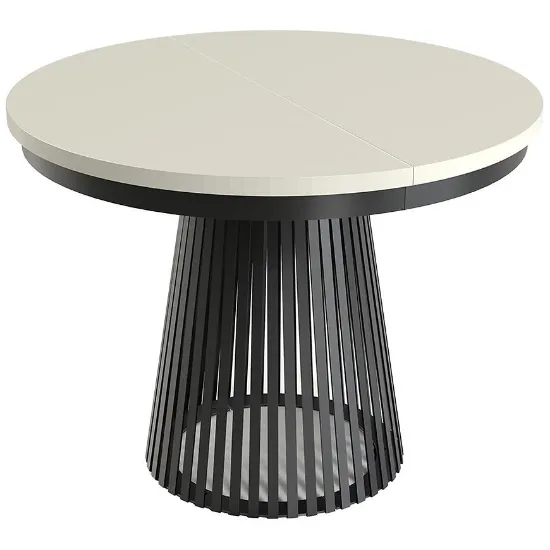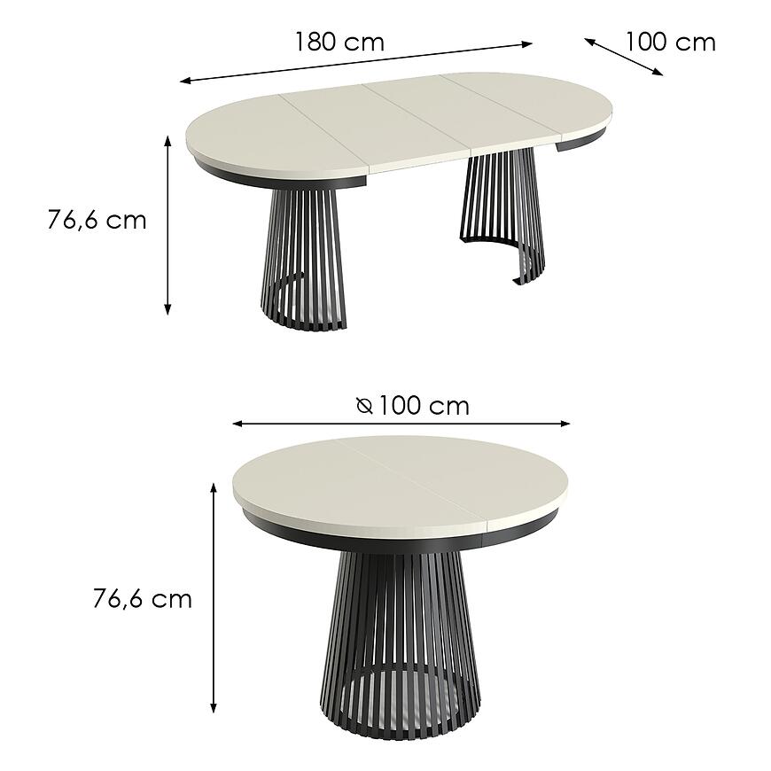 Stół Rozkładany Garda Czarny/Kashmir to nowoczesny i funkcjonalny mebel w stylu loftowym, łączący eleganckie czarne wykończenie z ciepłym beżowym blatem. Blat wykonany z laminowanej płyty wiórowej, stelaż z metalu zapewniają trwałość i stabilność. Rozkładany blat zwiększa długość stołu z 100 do 180 cm, a matowe wykończenie podkreśla nowoczesny charakter. To połączenie stylu, funkcjonalności i jakości, które wyróżni każde wnętrze.