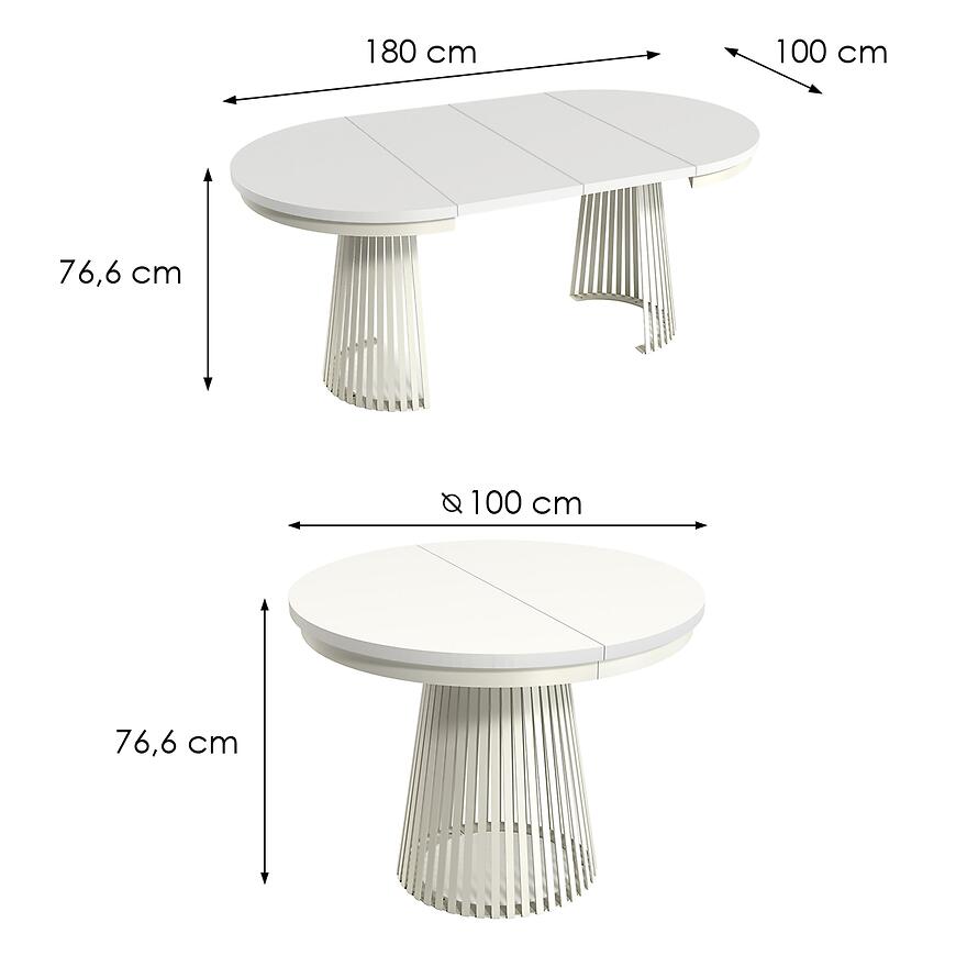 Stół Rozkładany Garda Kashmir/Biel Alpejska to nowoczesny i funkcjonalny mebel w stylu loftowym, łączący ciepły, beżowy odcień blatu z eleganckim białym wykończeniem. Blat wykonany z laminowanej płyty wiórowej, stelaż z metalu zapewniają trwałość i stabilność. Rozkładany blat zwiększa długość stołu z 100 do 180 cm, a matowe wykończenie podkreśla nowoczesny charakter. To połączenie stylu, funkcjonalności i jakości, które wyróżni każde wnętrze.