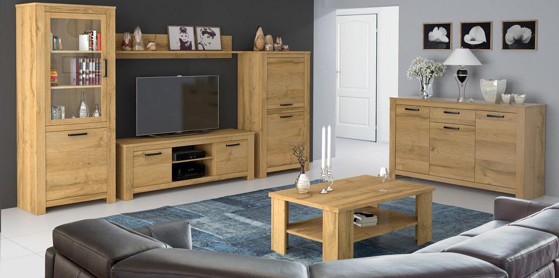 Mebel, którego wzornictwo opiera się na elegancji i prostocie, zdecydowanie nigdy nie wyjdzie mody. Ponadczasowa kolekcja Havanna reprezentuje stylistykę nawiązującą do trendów z ubiegłego wieku. Charakteryzuje ją zaskakujące wybarwienie w kolorze postarzanego dębu z dobrze odwzorowanym usłojeniem. Dzięki niemu bije od niego aura wieloletniej solidności i wytrzymałości. Kolekcja Havanna to doskonały wybór do salonu, ponieważ przestrzeń wewnątrz mebli pomoże uporządkować przedmioty codziennego użytku i stworzyće wyjątkową kompozycję. Dominujący kolor okleiny jest odpowiednim tłem dla czarnych uchwytów, więc całość prezentuje się bardzo estetycznie.