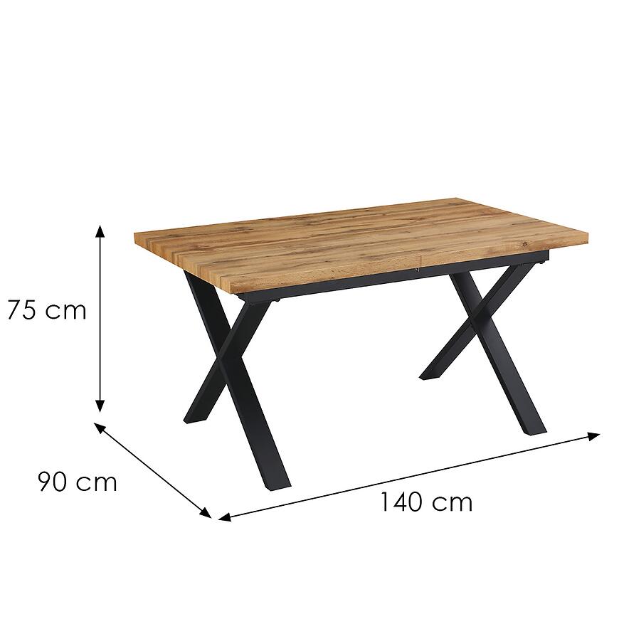 Stół rozkładany Idaho 12555 140-180x90 naturalny/czarny to połączenie klasycznego stylu i funkcjonalności. Wykonany z trwałej płyty MDF oraz stabilnego metalowego stelaża, gwarantuje solidność i elegancki wygląd. Naturalny blat o wykończeniu matowym można rozłożyć z 140 cm do 180 cm, dopasowując stół do potrzeb. Stół ma wysokość 75 cm, szerokość 90 cm, przy wadze 50,9 kg. To praktyczny i stylowy mebel, który łączy trwałość, komfort użytkowania i klasyczny design, wymagający samodzielnego złożenia.