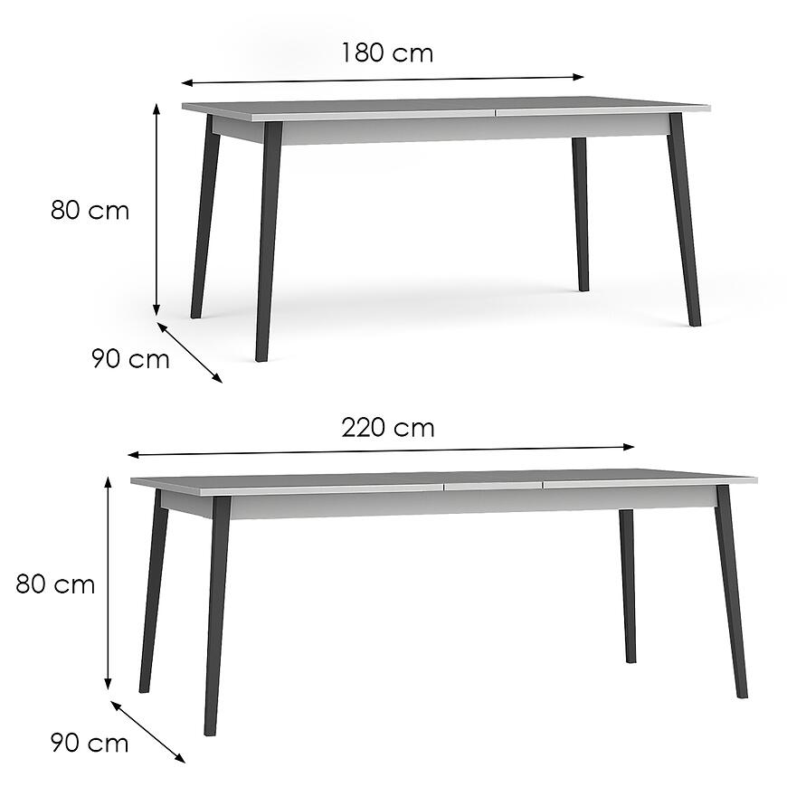 Rozkładany stół do jadalni Iris został zaprojektowany z myślą o codziennym komforcie. W standardowej formie ma 180 cm długości, co pozwala swobodnie korzystać z niego podczas codziennych posiłków. W razie potrzeby blat można szybko powiększyć do 220 cm, tworząc dodatkową przestrzeń dla gości.