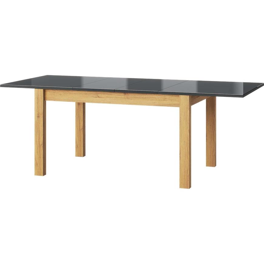 Stół rozkładany Kama w wykończeniu dąb camargue/czarny połysk to perfekcyjne połączenie funkcjonalności i nowoczesnego designu. Zaprojektowany z myślą o wygodzie i stylu, ten stół doskonale sprawdzi się jako centralny punkt Twojej jadalni czy salonu.