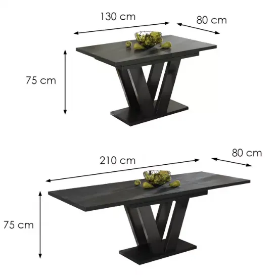 Stół rozkładany Lara 210 to elegancki i funkcjonalny mebel, który doskonale odnajdzie się w nowoczesnych wnętrzach, oferując wygodę i styl. Przed rozłożeniem jego długość wynosi 130 cm, co sprawia, że jest kompaktowy i idealny do codziennego użytkowania w mniejszych pomieszczeniach. Po rozłożeniu stół osiąga imponującą długość 210 cm, co pozwala na wygodne przyjęcie większej liczby gości, stanowiąc idealne rozwiązanie na rodzinne obiady, spotkania towarzyskie czy świąteczne przyjęcia.