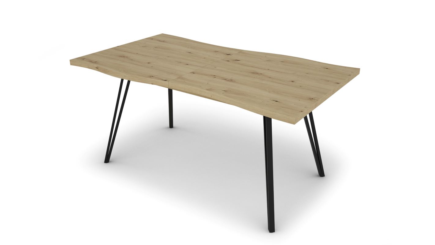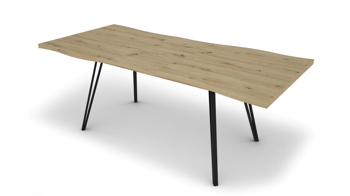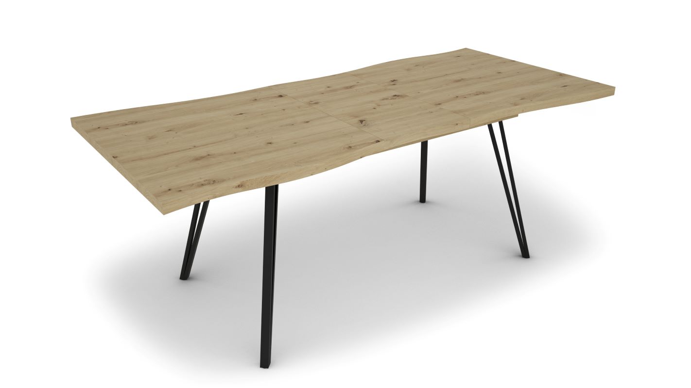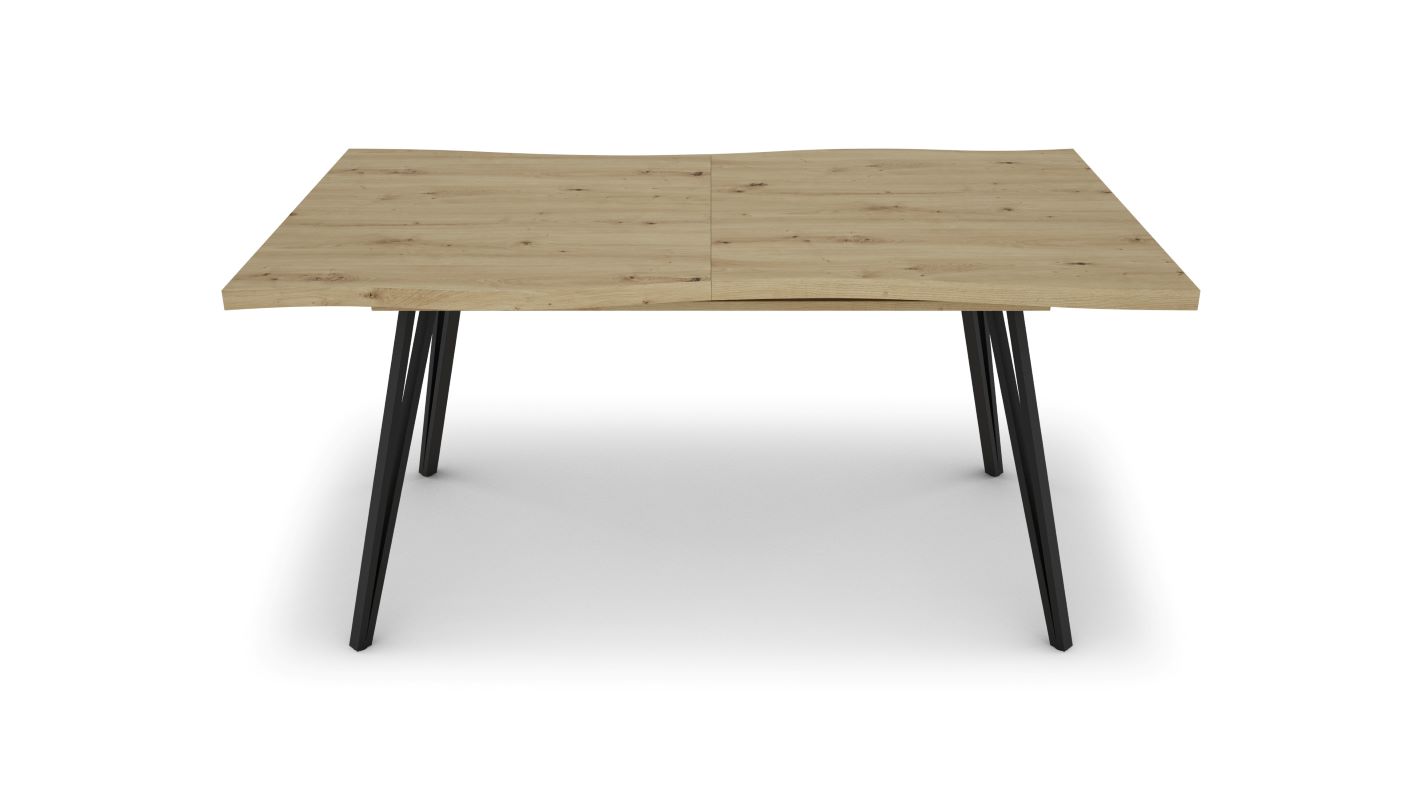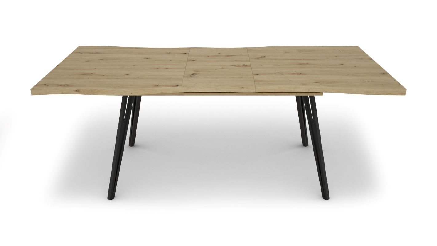 Solidne, metalowe nogi stołu, malowane proszkowo w matowym czarnym kolorze, gwarantują stabilność i trwałość konstrukcji. Metalowe prowadnice synchroniczne z hamulcem umożliwiają płynne i ciche rozkładanie stołu. Dodatkowo, stół wyposażony jest w praktyczną wkładkę, która może być łatwo składowana pod blatem, oszczędzając przy tym miejsce.