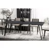 Stelaż wykonany z trwałego metalu zapewnia stabilność i podkreśla nowoczesny styl mebla, tworząc harmonijne połączenie z połyskującym blatem z MDF. Takie zestawienie materiałów sprawia, że stół Liwia-210 nie tylko prezentuje się elegancko, ale jest również odporny na codzienne użytkowanie i łatwy w utrzymaniu czystości.