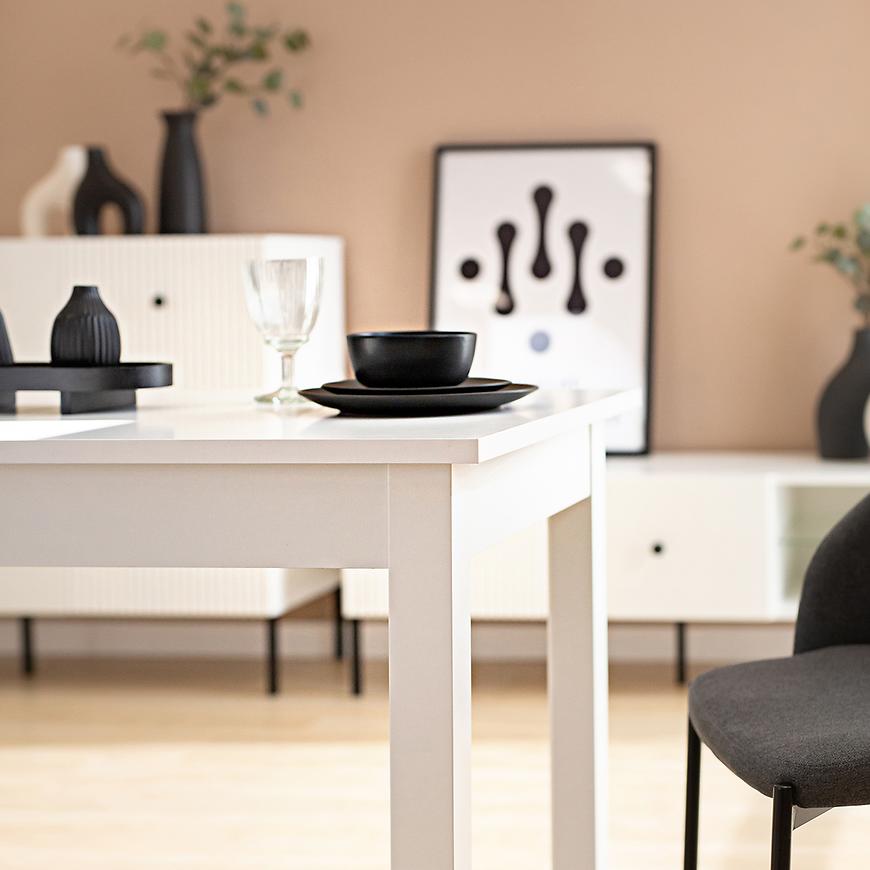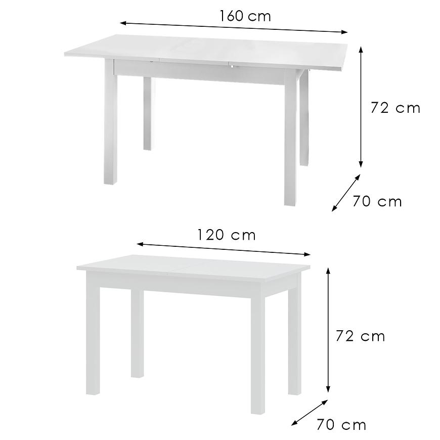 Prostokątny blat zapewnia wygodę użytkowania, a funkcja rozkładania czyni stół wyjątkowo funkcjonalnym meblem do kuchni, jadalni lub salonu.