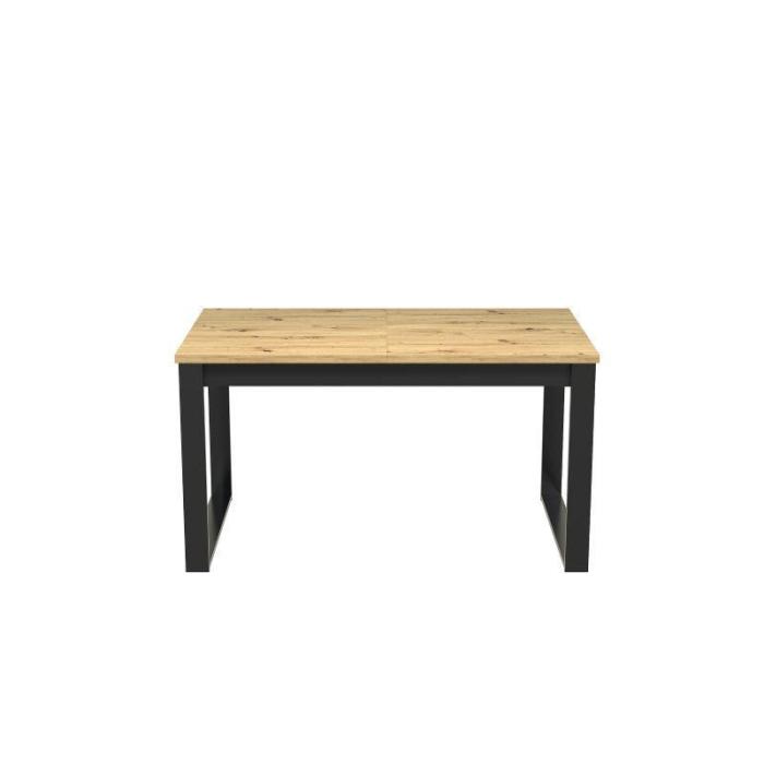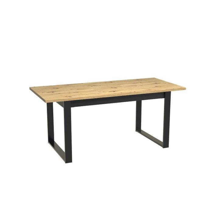 Stół rozkładany Novi do długości - 180 cm (jedna wkładka) lub 220 cm (dwie wkładki). Stół posiada metalowe nogi malowane proszkowo na kolor czarny. Blat wykonany z płyty laminowanej o gr. 28 mm w kolorze dąb artisan. Mebel do samodzielnego montażu.