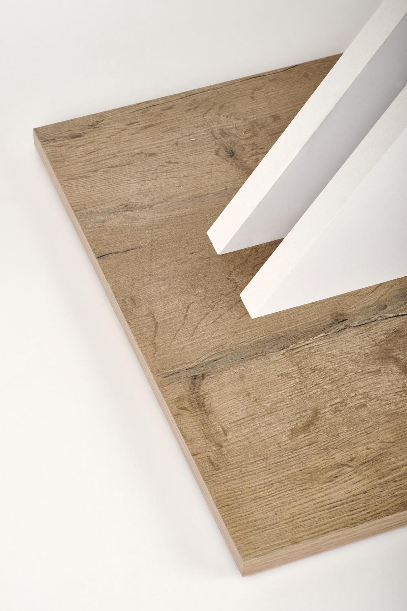 Kolorystyka stołu to połączenie elegancji i przytulności. Dąb lancelot, głęboki i wyrazisty odcień brązu, dodaje mu charakteru i klasy. Natomiast biel, która występuje w delikatnych akcentach, wprowadza do wnętrza świeżość i lekkość.