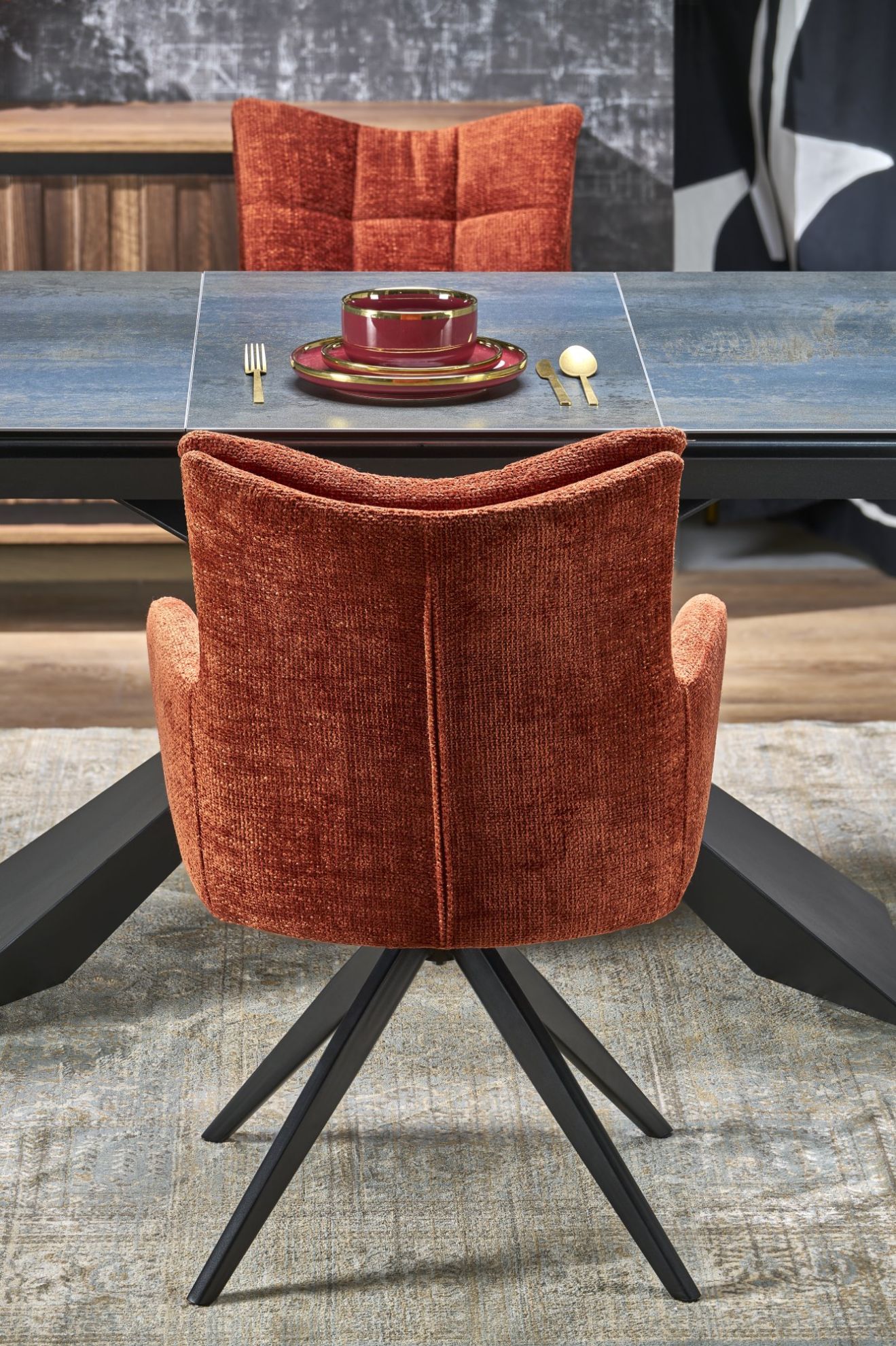 Jego imponujące wymiary, od 180 cm do 230 cm szerokości, 90 cm głębokości oraz 76 cm wysokości, zapewniają mnóstwo przestrzeni na wygodne spożywanie posiłków czy organizację spotkań rodzinnych. Blat stołu wykonany jest z trwałej ceramiki lub szkła, których powierzchnia odwzorowuje elegancki wygląd niebieskiego marmuru. To nie tylko praktyczne, ale również efektowne rozwiązanie, które nadaje pomieszczeniu wyjątkowy charakter.