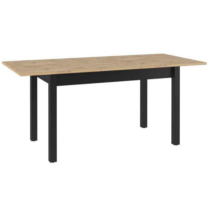 Elegancki, rozkładany stół w nowoczesnym stylu. Czarne, smukłe nogi w połączeniu z blatem imitującym naturalne drewno tworzą zestaw o niepowtarzalnym, loftowym charakterze. Złożony stół idealnie sprawdzi się podczas codziennych posiłków, natomiast rozłożony umożliwi spotkania w większym gronie. Mebel wykonano z wytrzymałej płyty laminowanej wykończonej trwałym obrzeżem ABS.