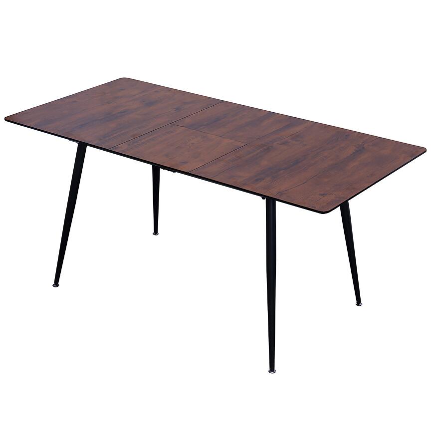 Stół Remy to połączenie funkcjonalności, elegancji i solidnej konstrukcji. Możliwość rozkładania sprawia, że jest wygodny zarówno na co dzień, jak i podczas większych spotkań. Ciemne drewnopodobne wybarwienie w zestawieniu z metalowym stelażem nadaje stołowi uniwersalny charakter, a matowe wykończenie blatu podkreśla jego nowoczesny wygląd.