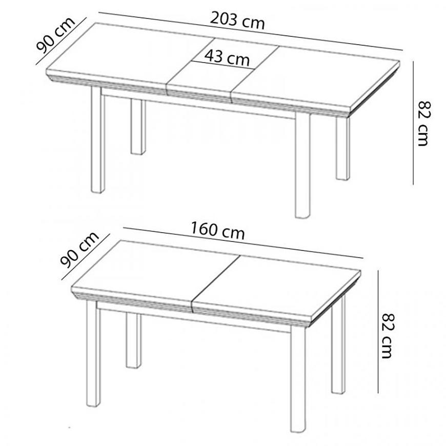 - Regulowana długość – przed rozłożeniem stół ma 160 cm, a po rozsunięciu osiąga 203 cm, co zapewnia dodatkową przestrzeń dla gości.