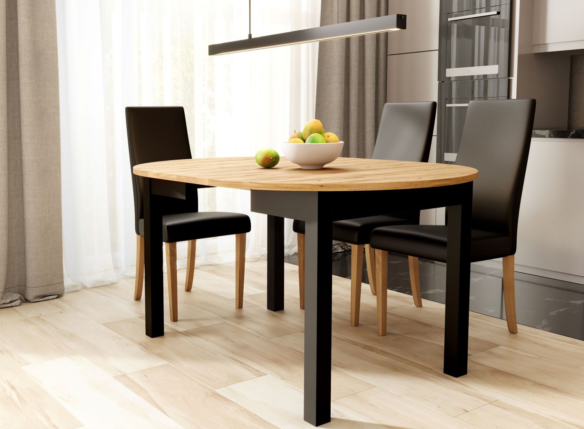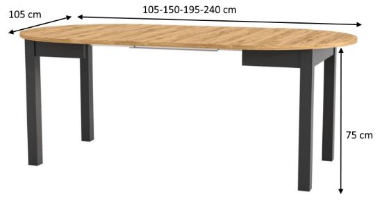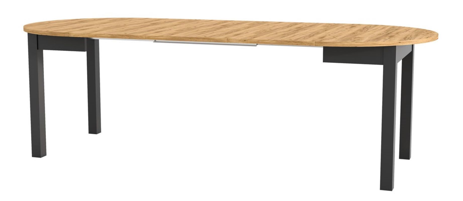 Stół Senti to funkcjonalny stół z możliwością rozłożenia blatu do 240 cm. Stół wyposażony w 3 wkładki przechowywane poza stołem, które pozwalają na swobodne dostosowanie długości stołu do naszych potrzeb. Możliwość rozsunięcia blatu z 105 cm do 240 cm sprawia, że zyskujesz elastyczność w użytkowaniu. Blat w kolorze dębu craft jest wspierany przez nogi w kolorze czarnym, co pozwala na łatwe dopasowanie do stylu pomieszczenia. Stelaż wykonany z płyty ofoliowanej a blat płyty laminowanej co zapewnia trwałość, a prowadnice kulkowe umożliwiają łatwe rozkładanie stołu.