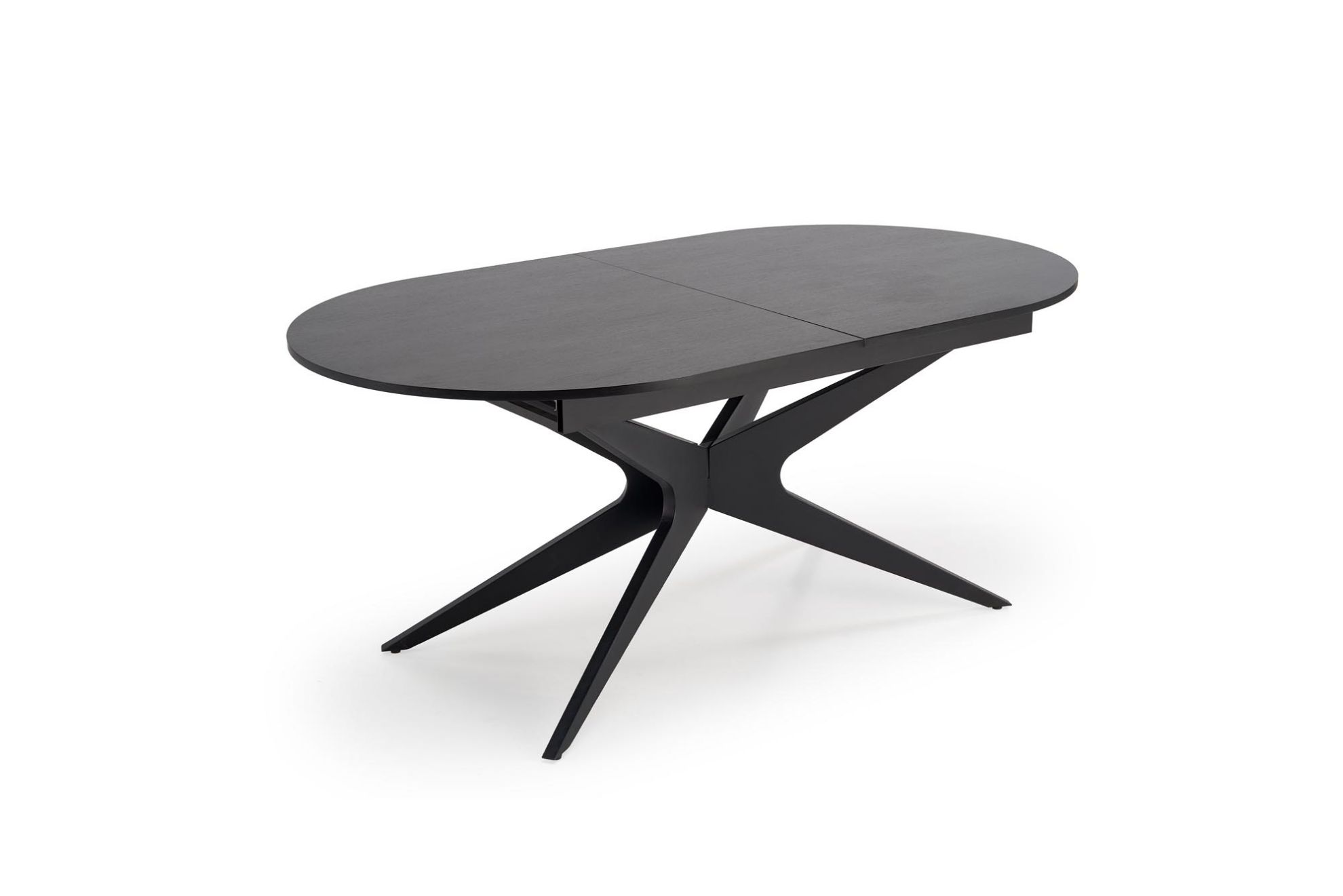 Stół rozkładany Sumplo łączy elegancję nowoczesnego designu z funkcjonalnością. Owalny blat z MDF okleinowanego w matowym wykończeniu w kolorze czarnym zapewnia trwałość i łatwe utrzymanie w czystości. Mechanizm rozkładania pozwala wydłużyć stół z 180 do 240 cm, umożliwiając komfortowe posadzenie od 6 do 8 osób.