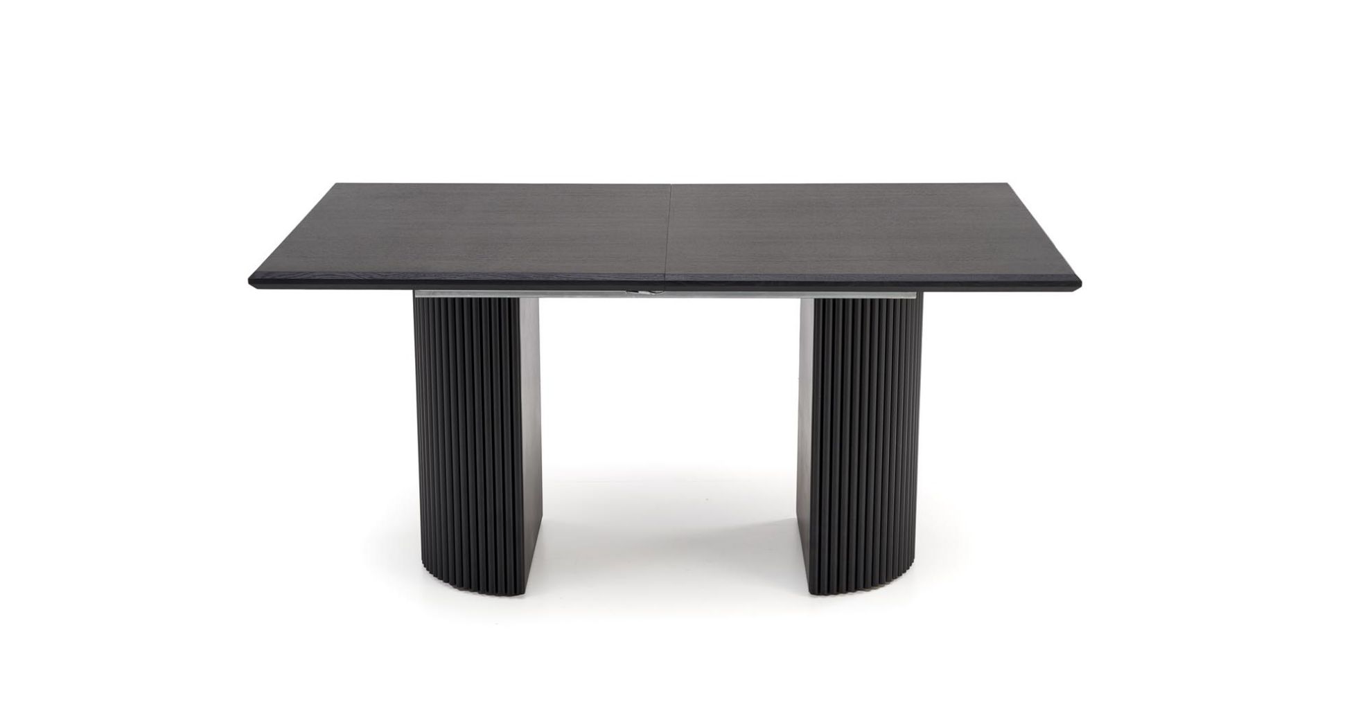 Stelaż wykonany z metalu w kolorze czarnym gwarantuje stabilność i solidność konstrukcji. Wymiary 160-250/90/76 cm oraz dwie nogi zapewniają wygodną przestrzeń przy posiłkach, a połączenie dębu naturalnego z czarnym metalem tworzy nowoczesny i elegancki akcent w jadalni lub salonie.