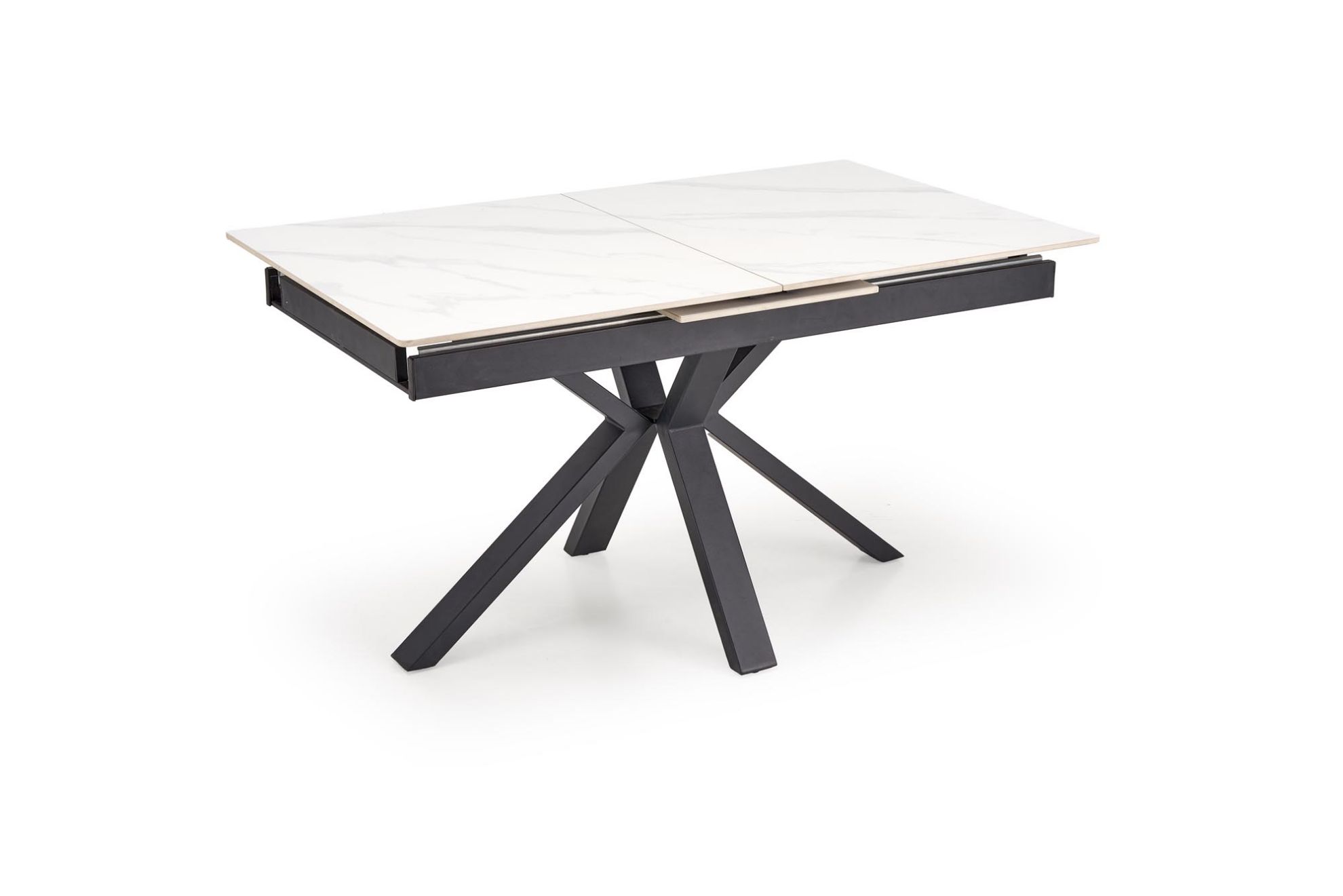 Stół Virello łączy nowoczesny design z funkcjonalnością rozkładanego mebla. Prostokątny blat ze spieku w kolorze srebrnego marmuru w matowym wykończeniu jest odporny na zarysowania, temperaturę i wilgoć. Dzięki mechanizmowi rozkładania długość stołu można zwiększyć z 140 do 180 cm, umożliwiając wygodne posadzenie od 6 do 8 osób.