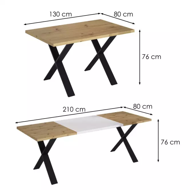 Dzięki funkcji rozkładania stół X-210 można szybko powiększyć, korzystając z dwóch dodatkowych wkładek o długości 40 cm każda. Ta opcja pozwala na łatwe dostosowanie powierzchni blatu do liczby gości, co sprawia, że stół ten sprawdzi się idealnie podczas spotkań rodzinnych czy większych przyjęć, oferując komfortowe miejsce do biesiadowania. Mechanizm rozkładania jest solidnie wykonany i intuicyjny w obsłudze, co gwarantuje wygodę użytkowania.