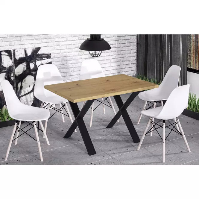 Stół rozkładany X-210 to nowoczesny i elegancki mebel, który łączy stylowy design z praktyczną funkcjonalnością. Wykonany z wysokiej jakości płyty MDF o gładkim, połyskującym wykończeniu blatu, stół prezentuje się wyjątkowo elegancko, dodając wnętrzu blasku i lekkości. Jego prostokątny blat o grubości 2,5 cm zapewnia wygodę i przestrzeń do codziennych posiłków oraz wyjątkowych okazji.