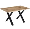 Metalowy stelaż stołu dodaje mu charakteru i zapewnia stabilność, harmonijnie łącząc się z połyskującym blatem. To połączenie trwałości metalu i elegancji MDF nadaje stołowi wyrazisty, nowoczesny charakter, który wkomponuje się zarówno w minimalistyczne, jak i bardziej stylizowane wnętrza, nadając przestrzeni luksusowego akcentu. Stół X-210 to doskonałe rozwiązanie dla osób ceniących zarówno praktyczność, jak i estetykę.