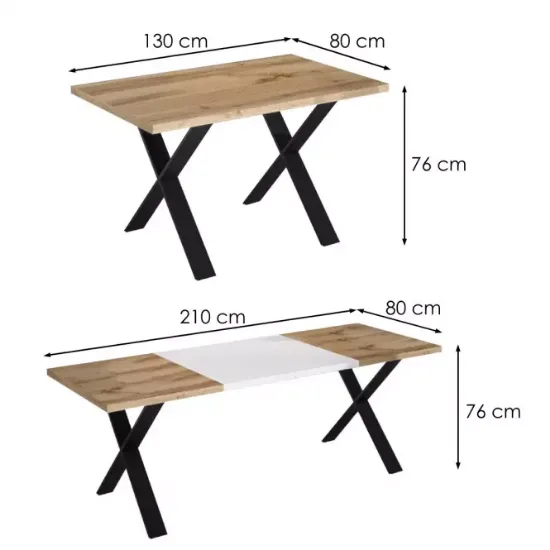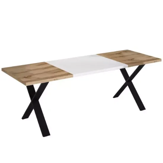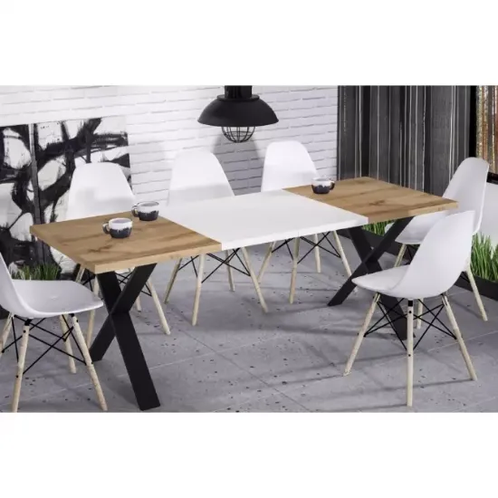 Stół rozkładany X-210 to nowoczesny i elegancki mebel, który łączy stylowy design z praktyczną funkcjonalnością. Wykonany z wysokiej jakości płyty MDF o gładkim, połyskującym wykończeniu blatu, stół prezentuje się wyjątkowo elegancko, dodając wnętrzu blasku i lekkości. Jego prostokątny blat o grubości 2,5 cm zapewnia wygodę i przestrzeń do codziennych posiłków oraz wyjątkowych okazji.