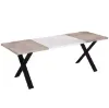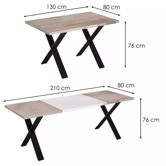 Dzięki funkcji rozkładania stół X-210 można szybko powiększyć, korzystając z dwóch dodatkowych wkładek o długości 40 cm każda. Ta opcja pozwala na łatwe dostosowanie powierzchni blatu do liczby gości, co sprawia, że stół ten sprawdzi się idealnie podczas spotkań rodzinnych czy większych przyjęć, oferując komfortowe miejsce do biesiadowania. Mechanizm rozkładania jest solidnie wykonany i intuicyjny w obsłudze, co gwarantuje wygodę użytkowania.