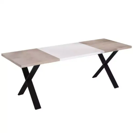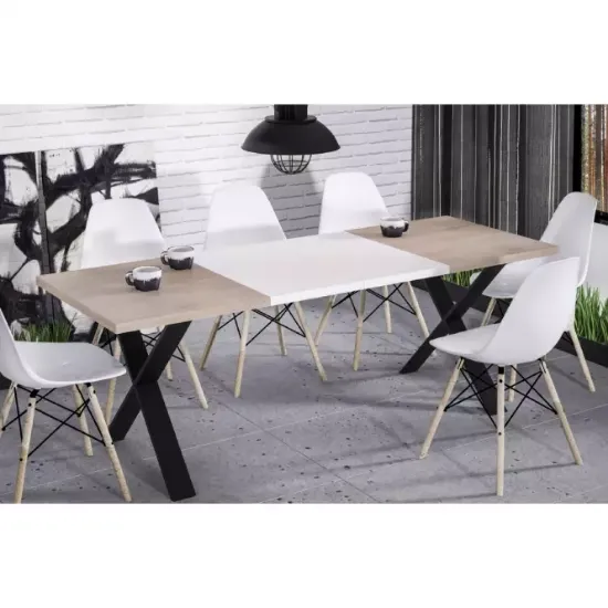 Stół rozkładany X-210 to nowoczesny i elegancki mebel, który łączy stylowy design z praktyczną funkcjonalnością. Wykonany z wysokiej jakości płyty MDF o gładkim, połyskującym wykończeniu blatu, stół prezentuje się wyjątkowo elegancko, dodając wnętrzu blasku i lekkości. Jego prostokątny blat o grubości 2,5 cm zapewnia wygodę i przestrzeń do codziennych posiłków oraz wyjątkowych okazji.