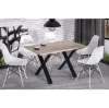 Metalowy stelaż stołu dodaje mu charakteru i zapewnia stabilność, harmonijnie łącząc się z połyskującym blatem. To połączenie trwałości metalu i elegancji MDF nadaje stołowi wyrazisty, nowoczesny charakter, który wkomponuje się zarówno w minimalistyczne, jak i bardziej stylizowane wnętrza, nadając przestrzeni luksusowego akcentu. Stół X-210 to doskonałe rozwiązanie dla osób ceniących zarówno praktyczność, jak i estetykę.