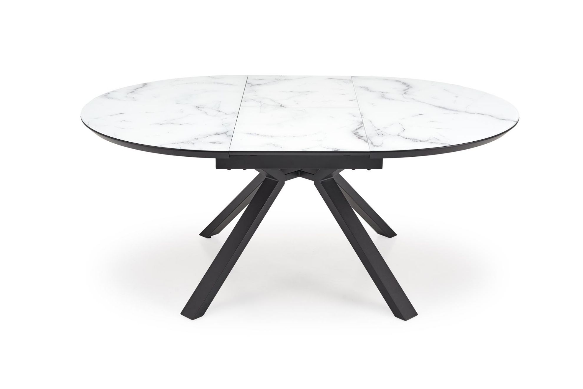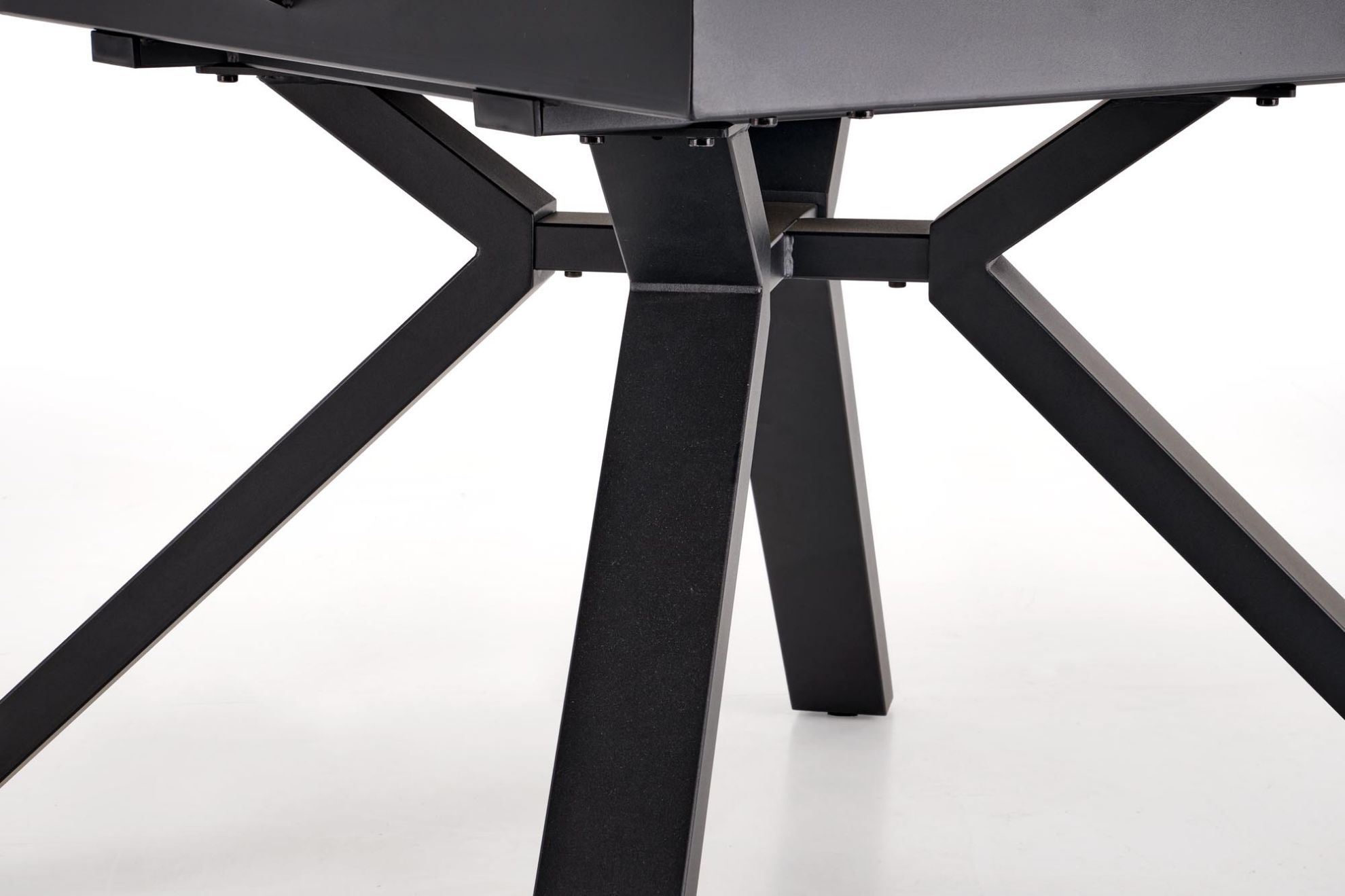 Stelaż wykonany ze stali malowanej proszkowo w czarnym kolorze gwarantuje stabilność i nowoczesny wygląd. Wymiary 130-180/130/76 cm oraz cztery nogi zapewniają wygodną przestrzeń do spożywania posiłków, a połączenie czarnego marmuru z metalem idealnie wpisuje się w nowoczesne aranżacje wnętrz.