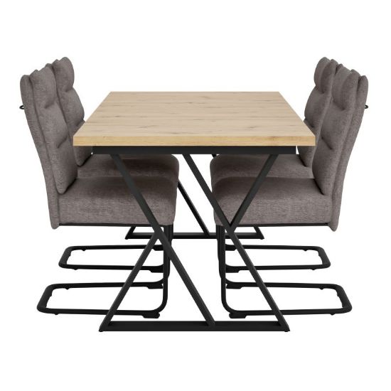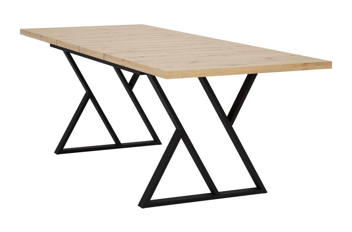 Blat w wybarwieniu Dąb Artisan doskonale oddaje strukturę naturalnego drewna, wprowadzając do wnętrza ciepły, przytulny klimat. Kontrastująca czarna, metalowa podstawa malowana proszkowo dodaje całości nowoczesnego, industrialnego charakteru i zapewnia solidność oraz stabilność mebla.
