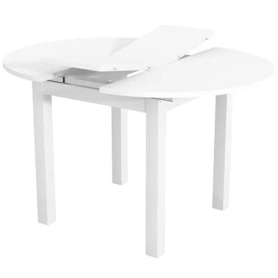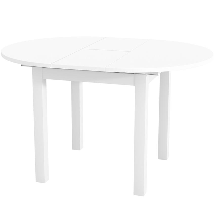 Wykonany z laminowanej płyty wiórowej o matowym wykończeniu, stół Aurora prezentuje się elegancko i nowocześnie, a jednocześnie jest odporny na codzienne użytkowanie. Biały kolor optycznie rozjaśnia wnętrze i świetnie komponuje się z różnymi stylami aranżacyjnymi – od minimalistycznych po skandynawskie.