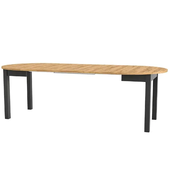 Wykonany z laminowanej płyty wiórowej o matowym wykończeniu, stół Indus prezentuje się elegancko i nowocześnie, a jednocześnie jest odporny na codzienne użytkowanie. Dąb craft/czarny kolor nadaje wnętrzu charakteru i świetnie komponuje się z różnymi stylami aranżacyjnymi – od minimalistycznych po skandynawskie.