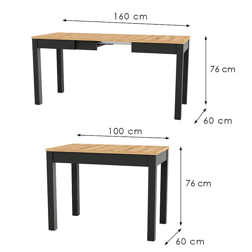 Dzięki funkcji rozkładania, stół Jowisz z łatwością dopasujesz do potrzeb chwili – jego długość zwiększysz z 100 cm do 160 cm, co sprawia, że bez problemu pomieścisz przy nim większą liczbę gości. Szerokość 60 cm i wysokość 76 cm zapewniają komfort użytkowania zarówno podczas codziennych posiłków, jak i większych spotkań rodzinnych.