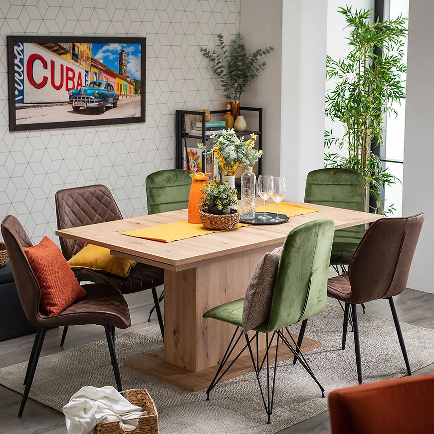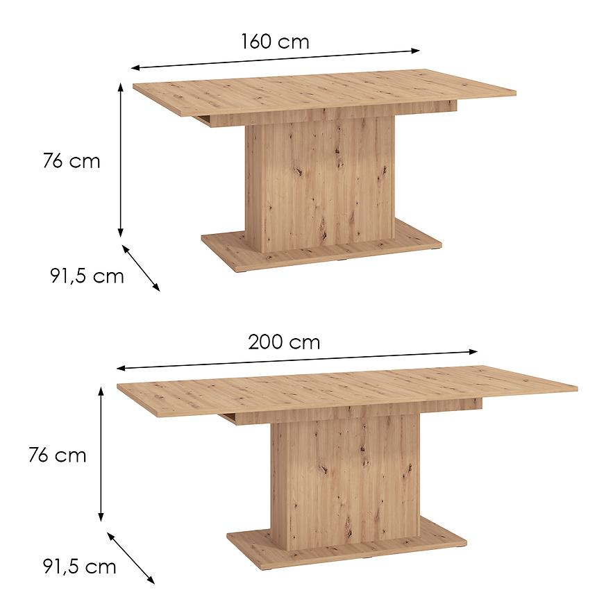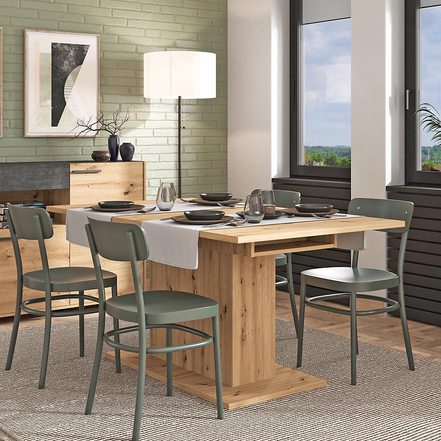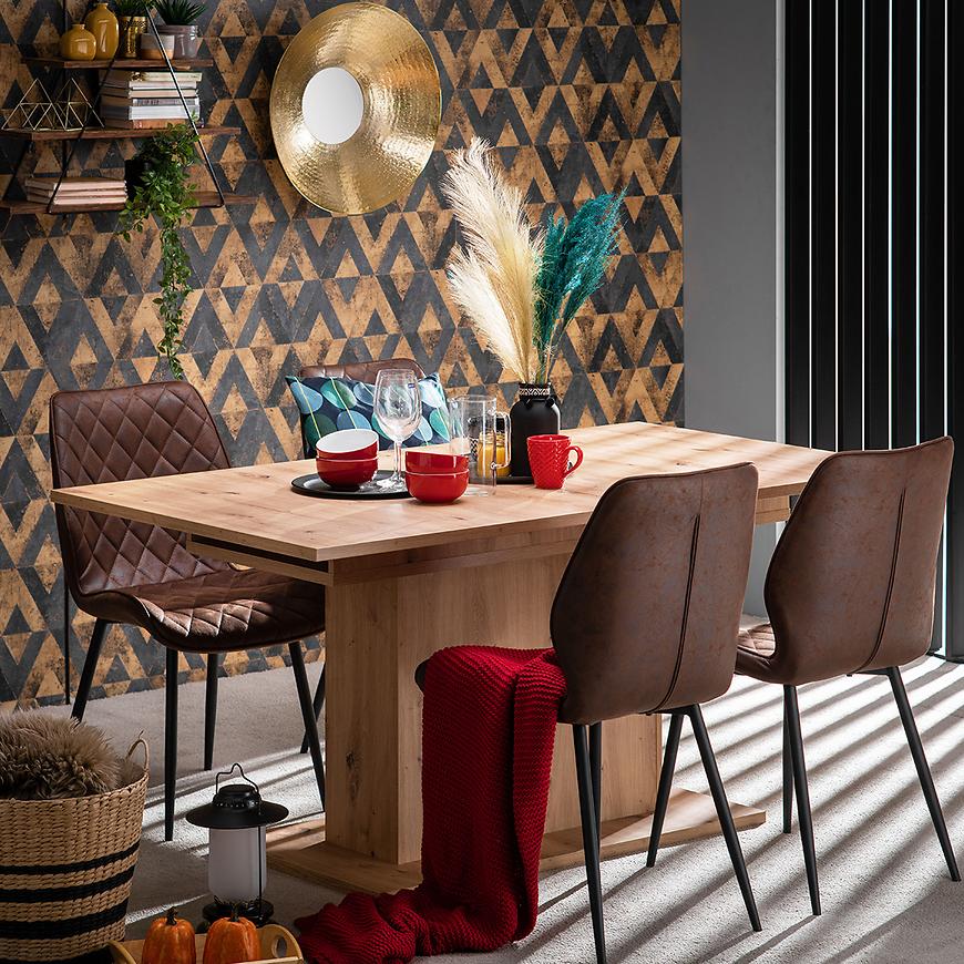 Prostokątny blat zapewnia wygodę użytkowania, a funkcja rozkładania czyni stół wyjątkowo funkcjonalnym meblem do kuchni, jadalni lub salonu.