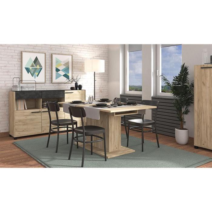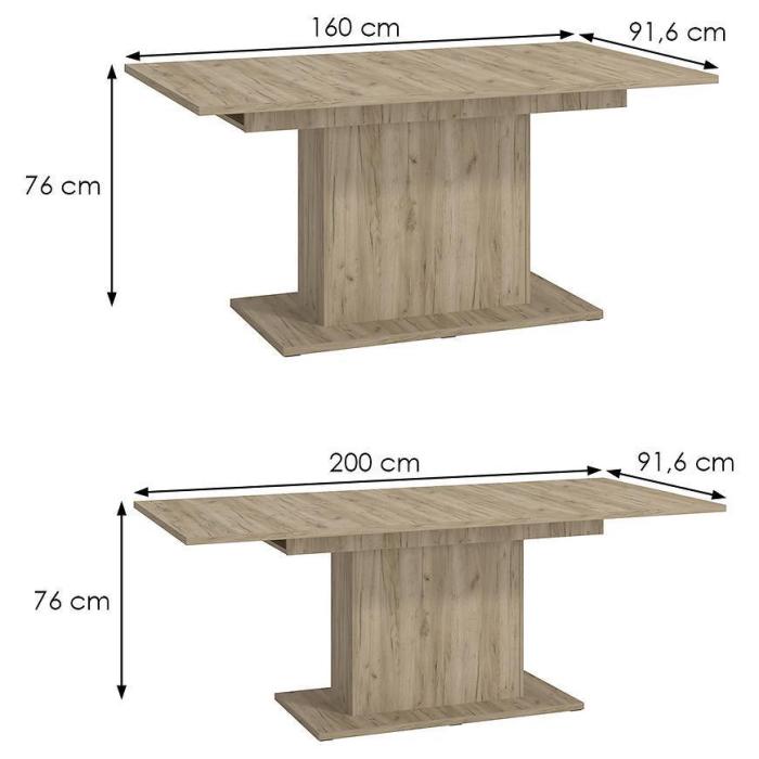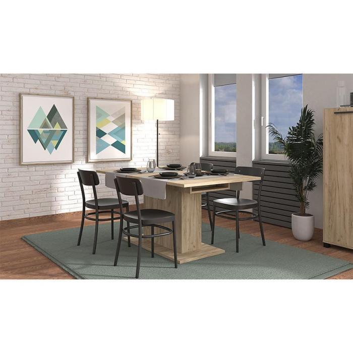 Doskonale wpasuje się we wnętrza w stylu nowoczesnym i klasycznym. Stół wykonany jest z płyty wiórowej laminowanej.