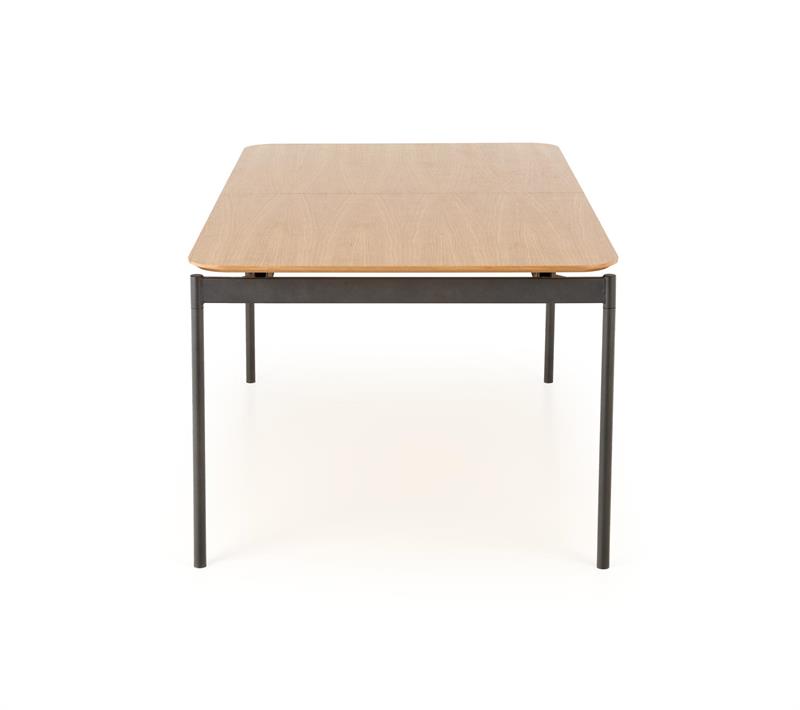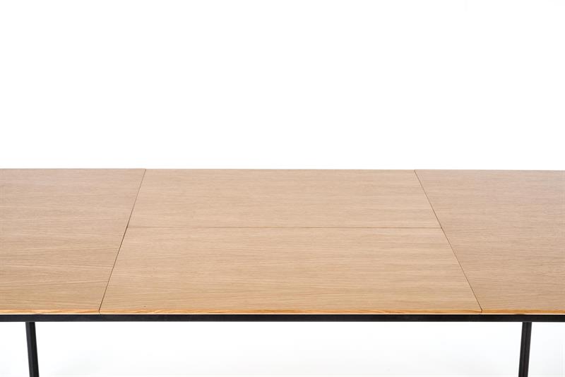 Kolor dąb naturalny nadaje stołu elegancji i przytulności. Jest to ciepły odcień drewna, który doskonale harmonizuje z różnymi stylami wnętrz, dodając im naturalnego uroku i klasy. Czarne nogi stołu stanowią kontrastujący element, który dodaje mu nowoczesności i wyrazistości. Solidna konstrukcja nóg zapewnia stabilność i wytrzymałość, co sprawia, że stół jest nie tylko piękny, ale także praktyczny i trwały.