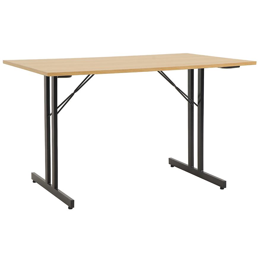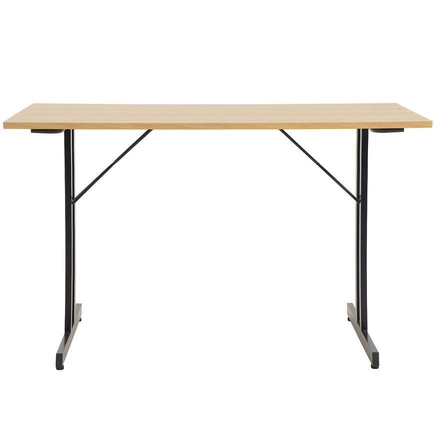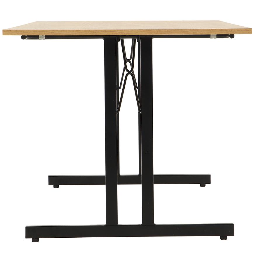 Blat wykonany z wysokiej jakości płyty MDF w matowym wykończeniu prezentuje się elegancko i jest łatwy w pielęgnacji. Naturalny kolor blatu w połączeniu z czarnym, metalowym stelażem tworzy ponadczasową kompozycję, która harmonijnie wpisuje się w różne aranżacje – od klasycznych po nowoczesne.