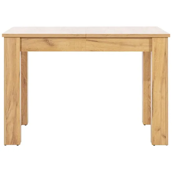 Wykonany z wytrzymałej płyty wiórowej laminowanej stół Snobi zachwyca trwałością i estetyką wykończenia. Kolor dąb craft złoty wprowadza do wnętrza ciepło i naturalny urok, idealnie współgrając z nowoczesnymi aranżacjami. Matowe wykończenie prostokątnego blatu dodaje elegancji i podkreśla subtelny charakter mebla.