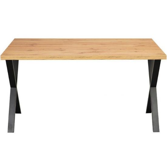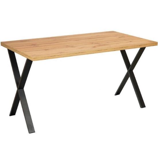 Prostokątny stół 140x80 cm, matowy blat z płyty wiórowej laminowanej, stabilny stelaż metalowy, nierozkładany, elegancki design w kolorze dąb Wotan, wymaga samodzielnego montażu, idealny do jadalni i kuchni.