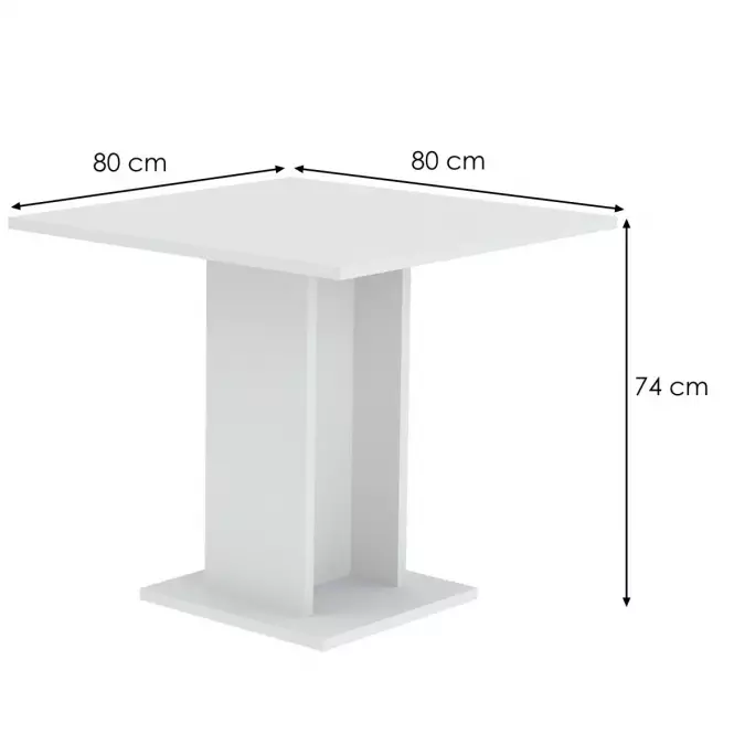 Kwadratowy kształt blatu o stałych wymiarach sprzyja swobodnemu rozmieszczeniu krzeseł i zachowaniu przestrzeni. Prosta forma stołu sprawia, że łatwo wpasuje się on zarówno w minimalistyczne, jak i bardziej dekoracyjne wnętrza, będąc efektownym tłem dla dowolnych dodatków – od kolorowych serwetek po wyraziste nakrycia stołowe. Stół Sorrento Biały idealnie komponuje się z jasnymi i ciemnymi akcentami, wnosząc do pomieszczenia elegancję i harmonię.