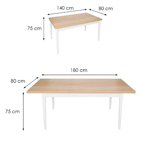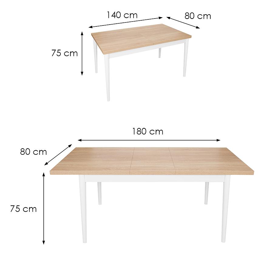 Stół ST-05 140x80+40 cm sonoma/biały